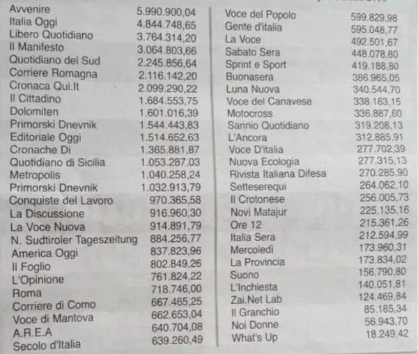 Ecco la lista dei giornali che prendono contributi dallo Stato.