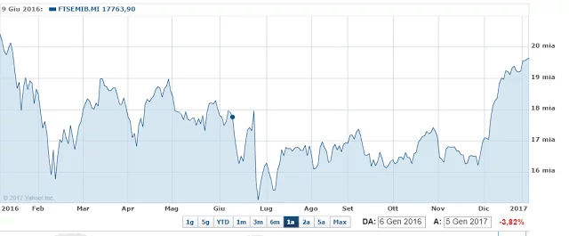 | FTSE MIB dal 6 Gennaio 2016 al 6 Gennaio 2017 fonte: Finance Yahoo |
